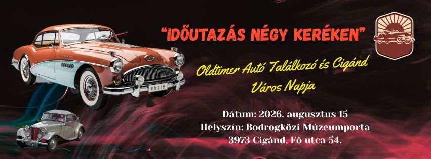 Szeretettel várunk minden kedves veteránjármű-kedvelőt és gyűjtőt a 2026. augusztus 15-én megrendezésre kerülő Oldtimer Autó Találkozó rendezvényünkre! Az esemény a Cigánd Város Napja (Hangoljunk együtt ifjúsági fesztivál) keretein belül kerül megrendezésre.